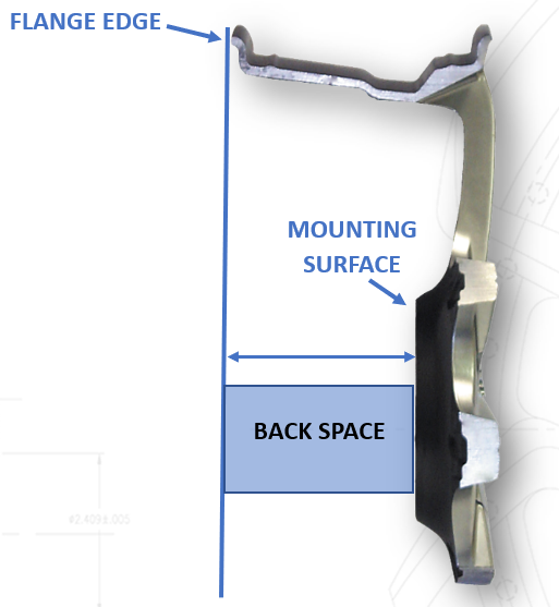 To measure the backspace, lay a straight edge across the back of the wheel and measure the distance from that edge to the mounting surface.